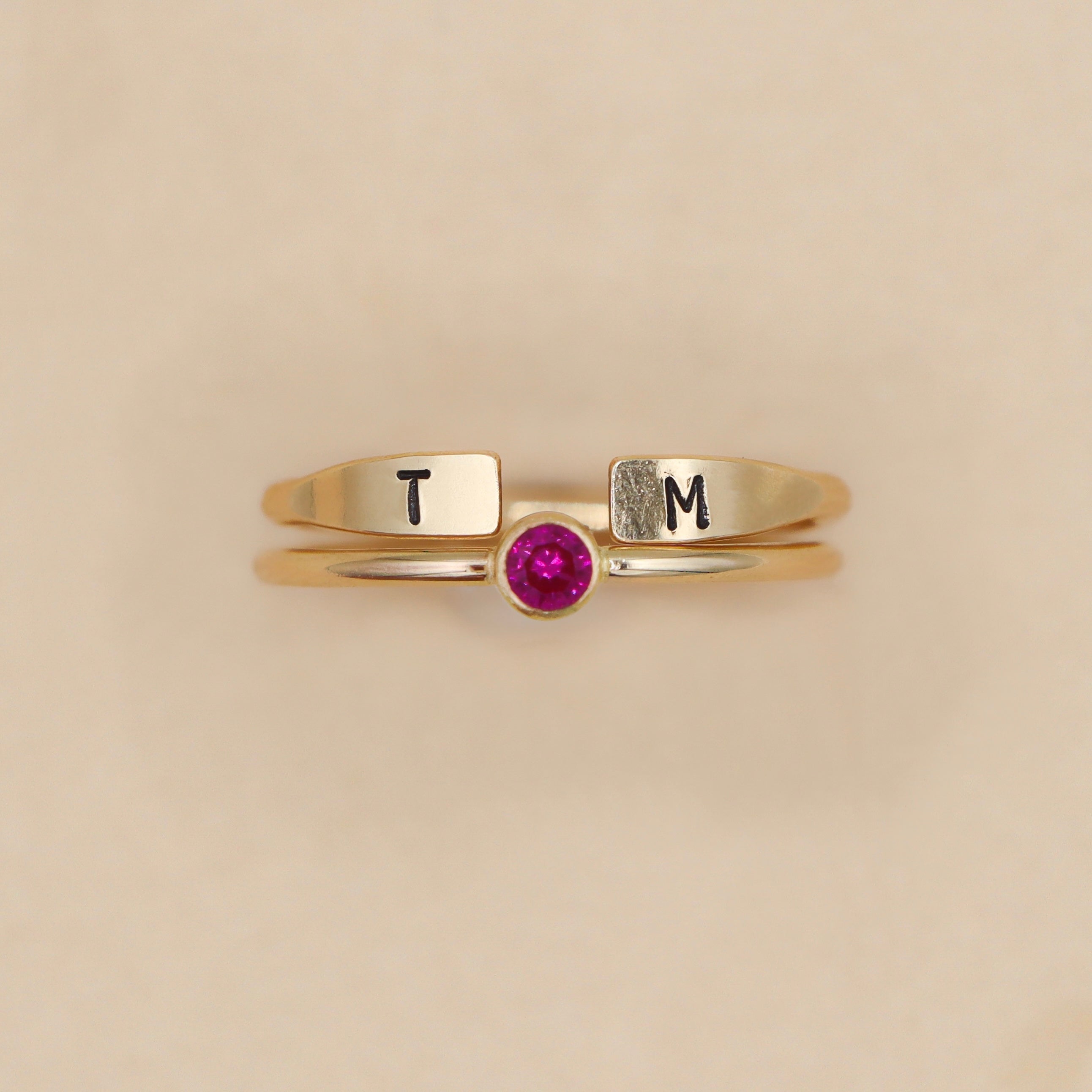 14K Gold Filled Plain Birthstone and Initial Ring Set