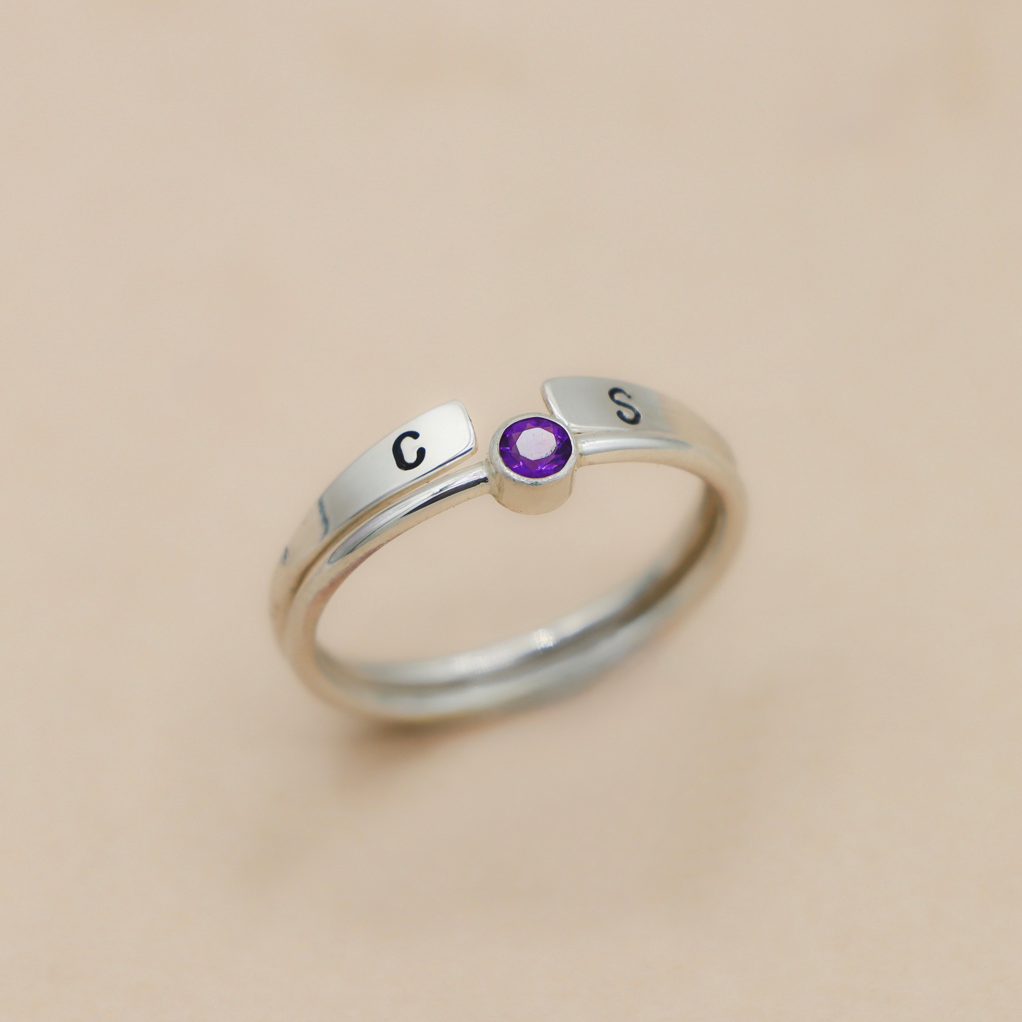 Initial and Plain Birthstone Ring Set in Sterling Silver